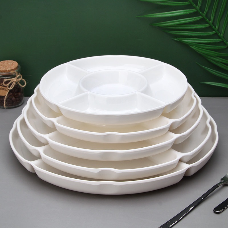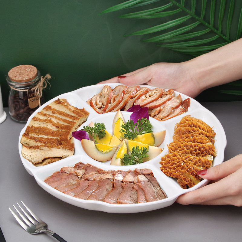 白色仿瓷餐盘多格盘密胺配料盘塑料拼盘圆形五格卤水配菜盘小吃盘