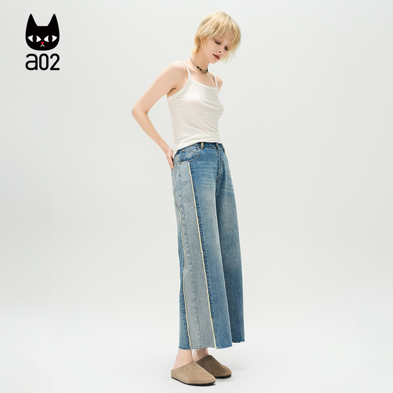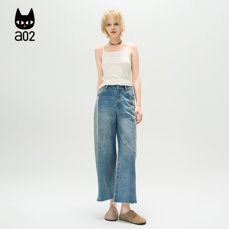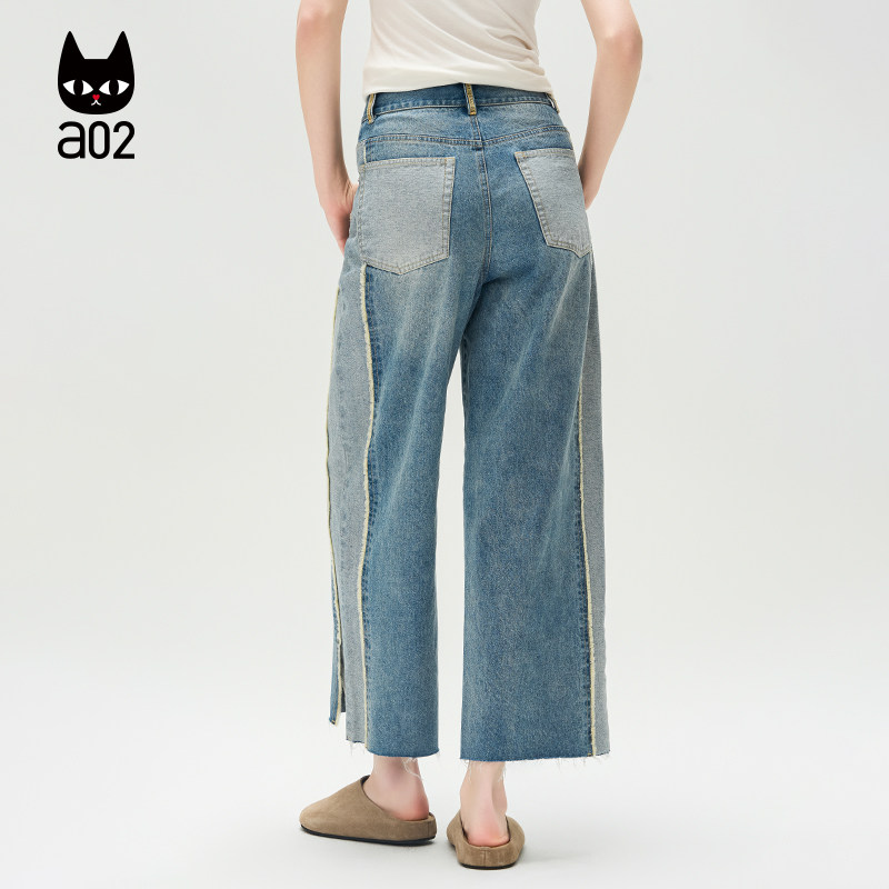 a02【ET自然系列】设计感牛仔裤子女2025春秋新款9分裤直筒秋装