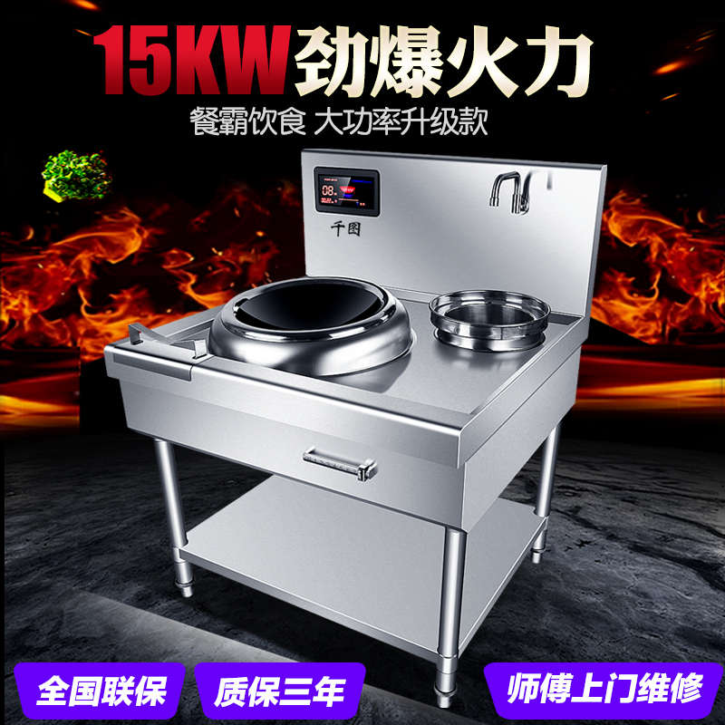 商用电磁炉大功率电炒炉12kw餐厅饭店设备凹面爆炒电炒锅双头电灶