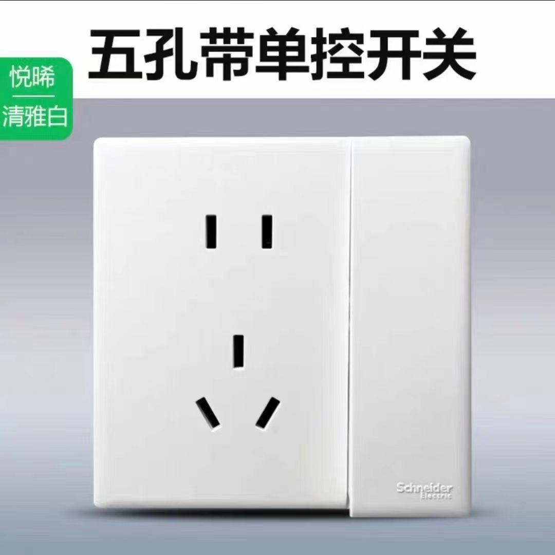 施耐德悦晞清雅白开关插座一开五孔单开双控家用三孔空调电脑墙壁