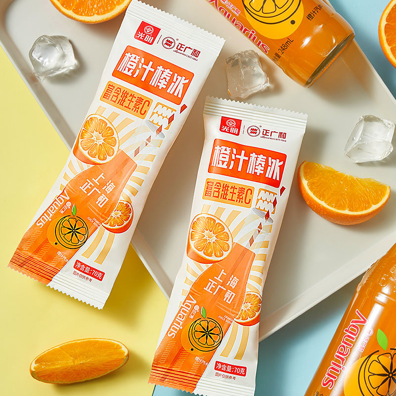 光明×正广和橙汁汽水棒冰橙味冰淇淋童年棒冰冷饮雪糕批发70g/支