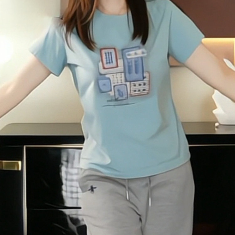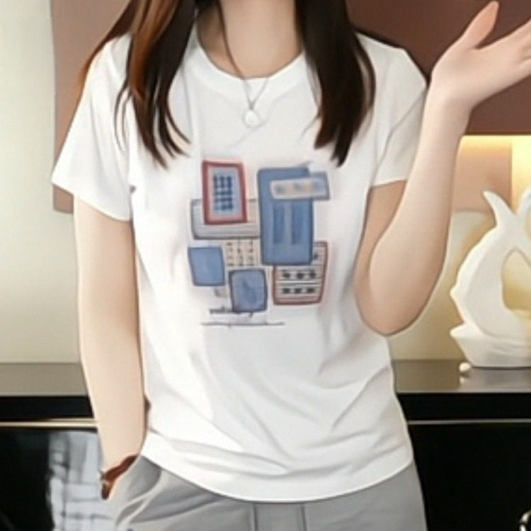 2026夏季新款圆领百搭印花正肩短袖T恤女时尚洋气显瘦上衣潮