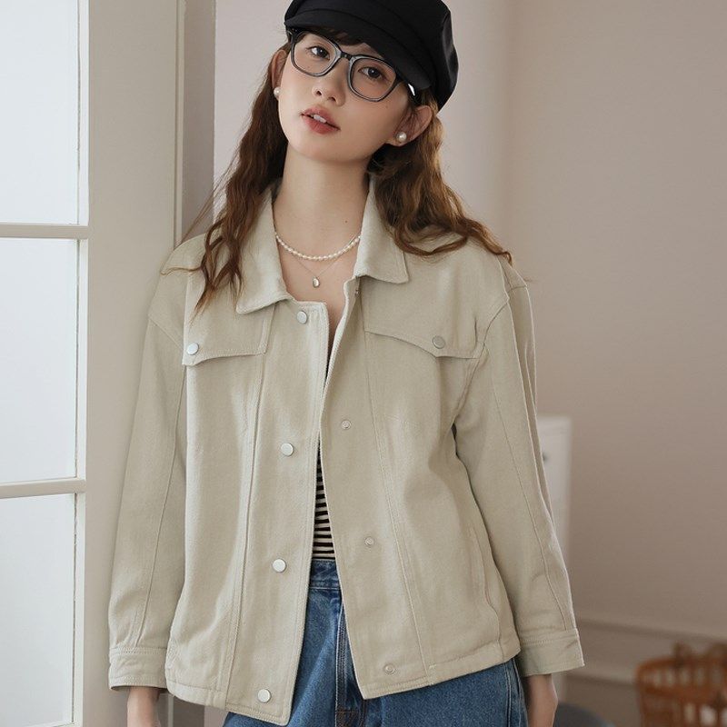 浅色短外套女牛仔2025新款春秋装薄款短款夹克工装风休闲长袖上衣