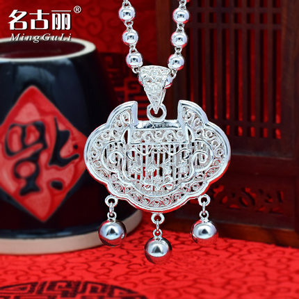 纯银长命锁项链足银平安锁吊坠女童男宝宝小孩女孩银锁大人毛衣链