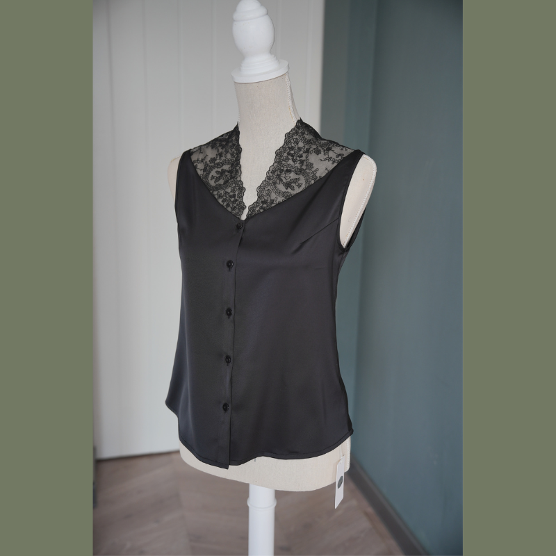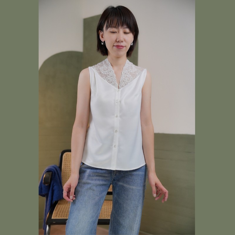 迷人静奢风美背内搭白色精致蕾丝V领打底衫高级感女上衣无袖衬衫