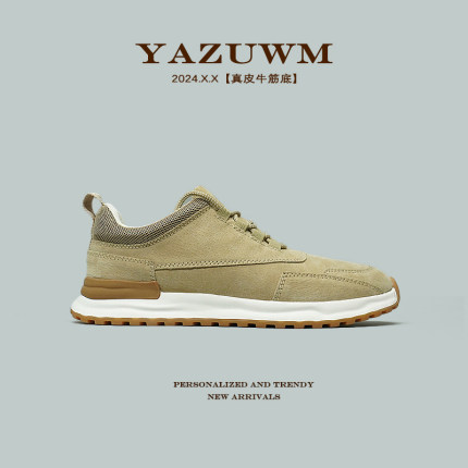 超有质感】高品质牛筋底百搭时尚休闲鞋男真皮猪扒皮外贸捡漏皮鞋