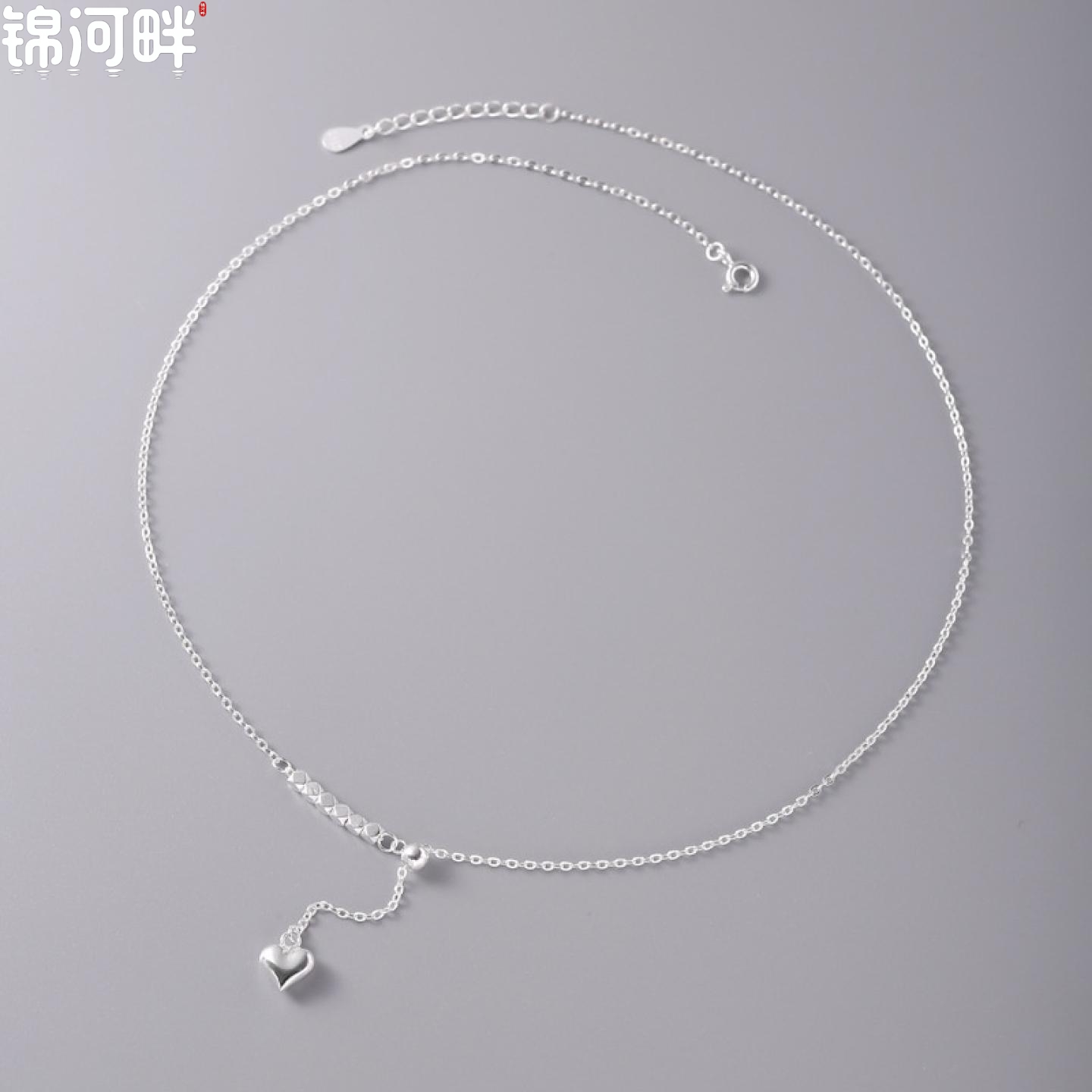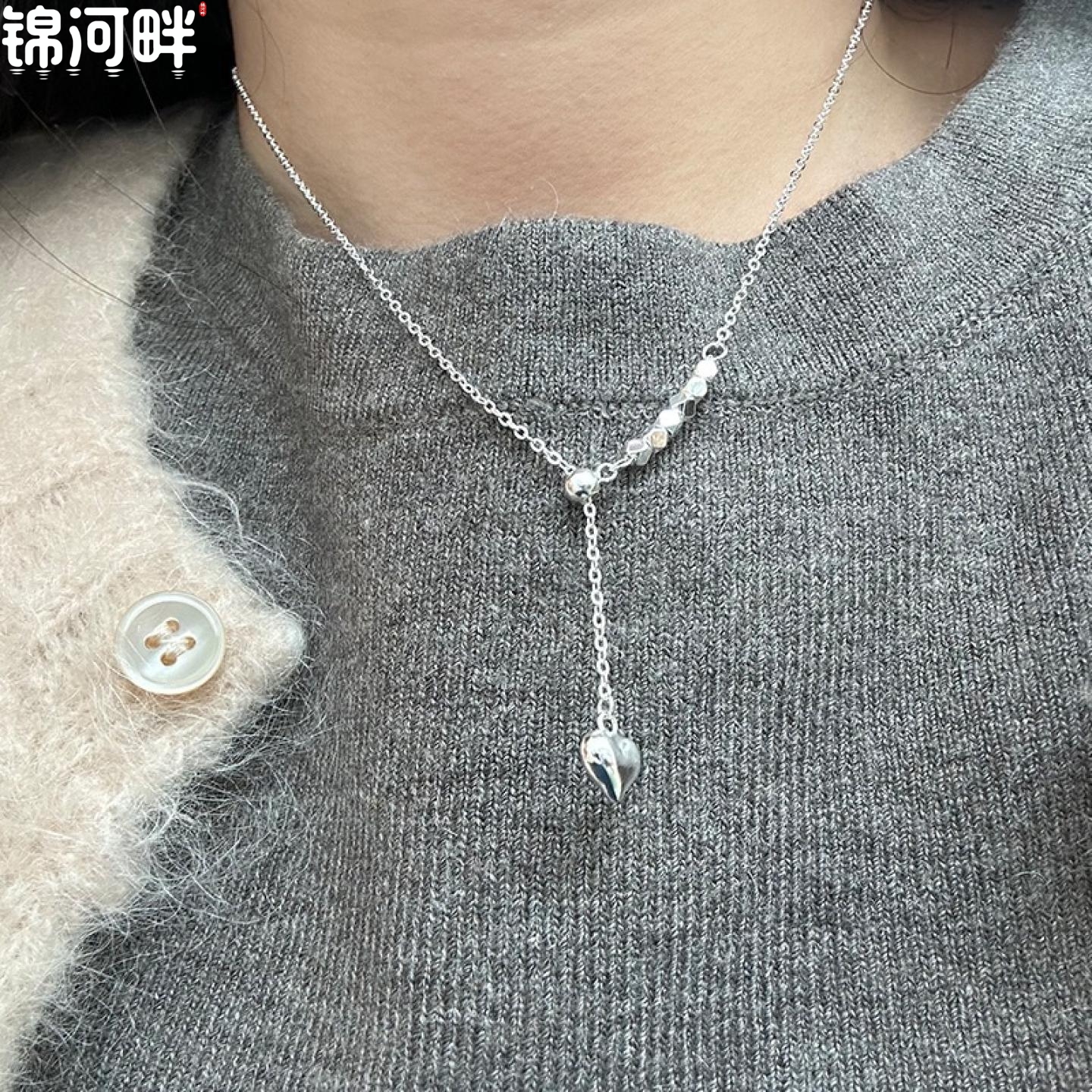 锦河畔 925纯银碎银子爱心流苏项链女简约轻奢抽拉式桃心形锁骨