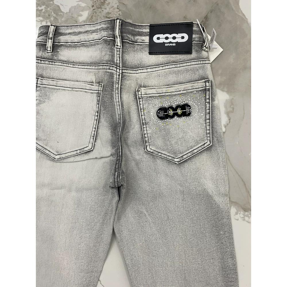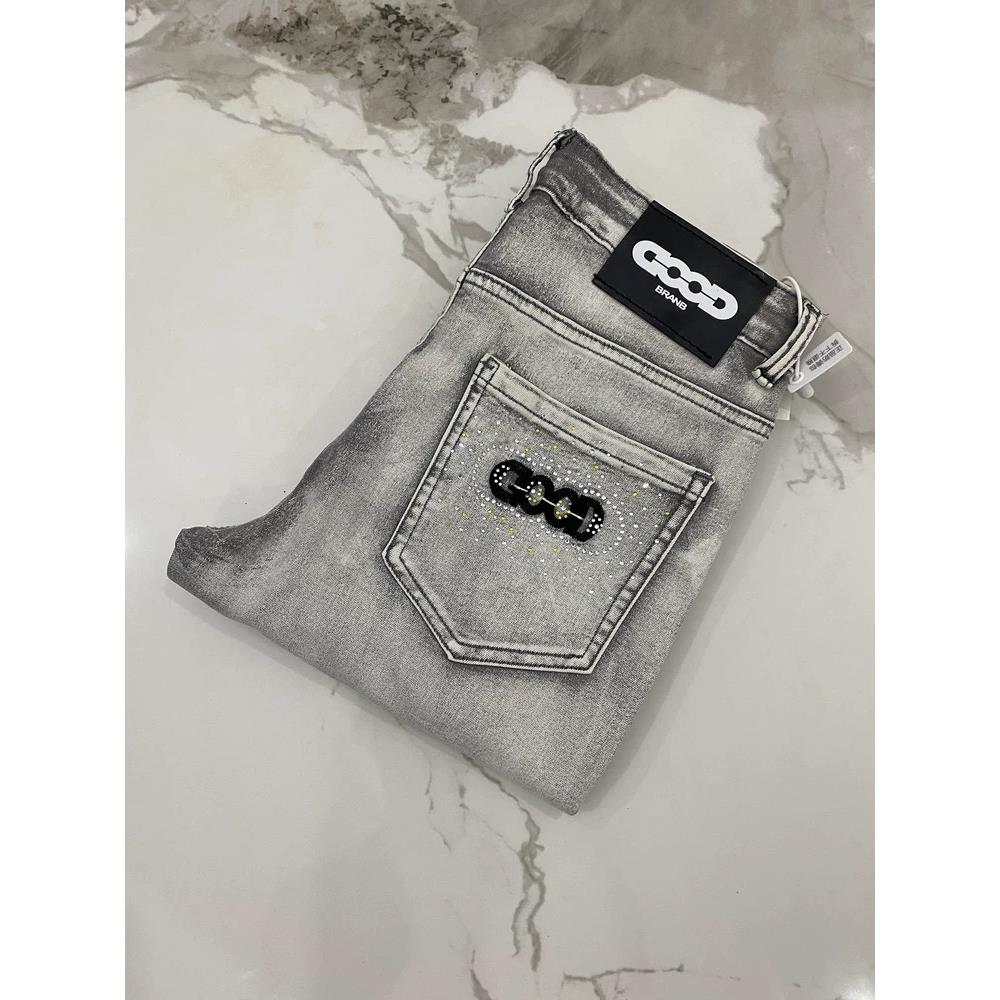 2025新款GOOD刺绣烫钻牛仔裤男女情侣同款潮牌弹力修身小脚长裤子