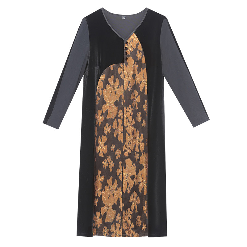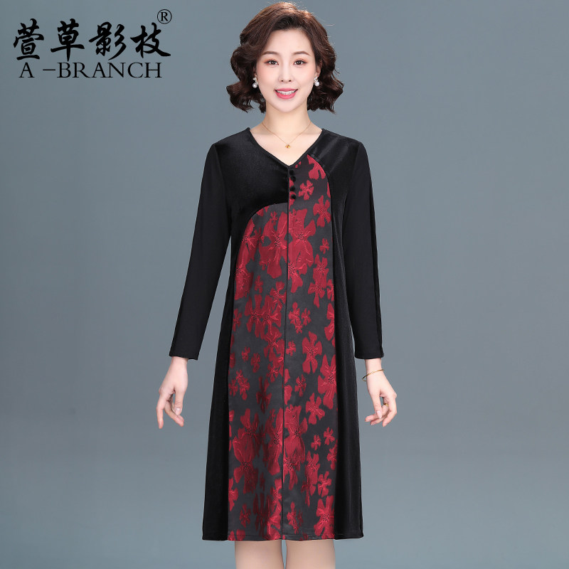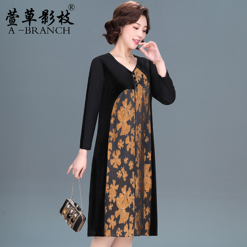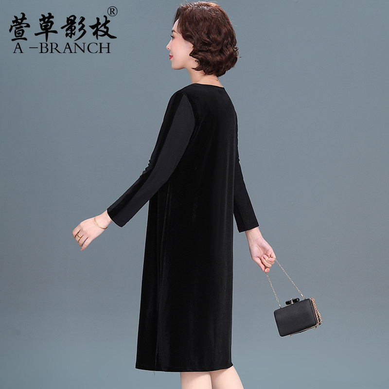 高贵品牌妈妈金丝绒连衣裙秋冬装