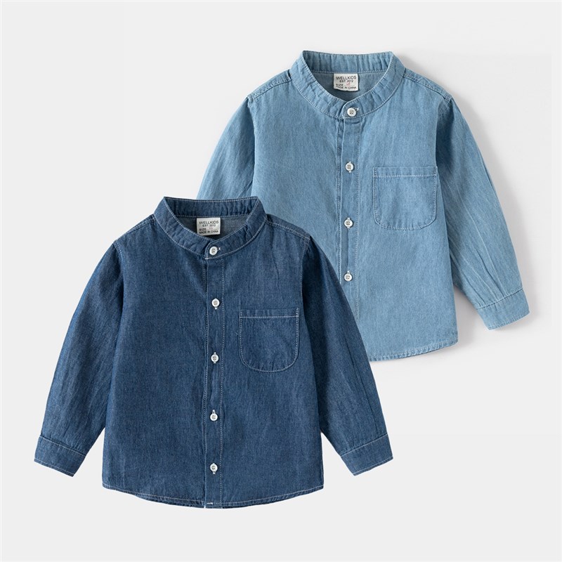 软软的牛仔布 男童衬衫长袖宝宝春秋2023新款儿童休闲立领外套潮