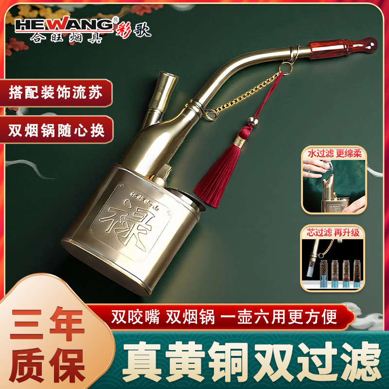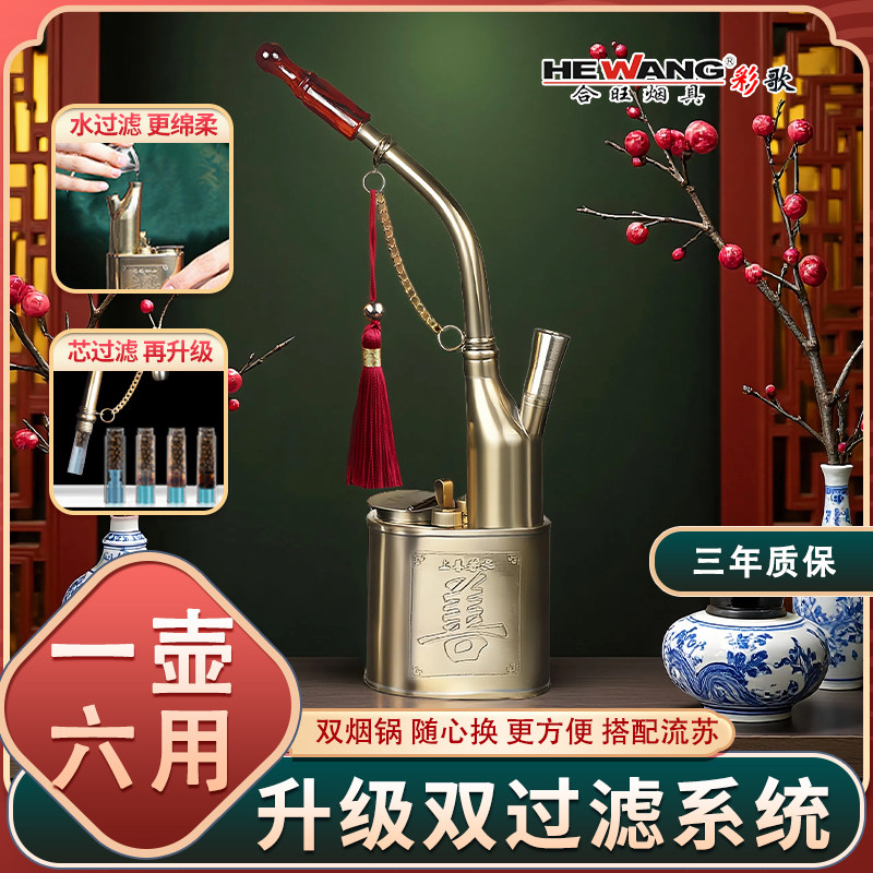 合旺六用复古老式黄铜水烟斗男士纯铜过滤水烟壶水烟袋高档过滤器