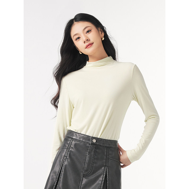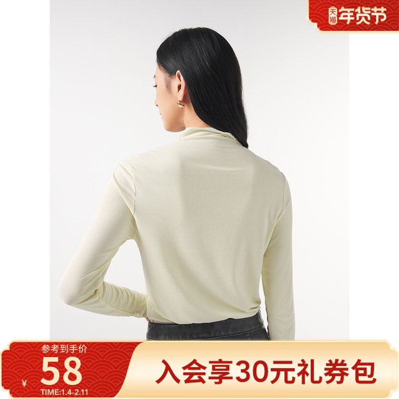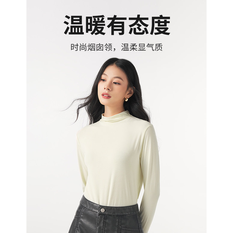 热风内搭打底衫女纯色简约基础修身显瘦舒适长袖T恤秋冬新款