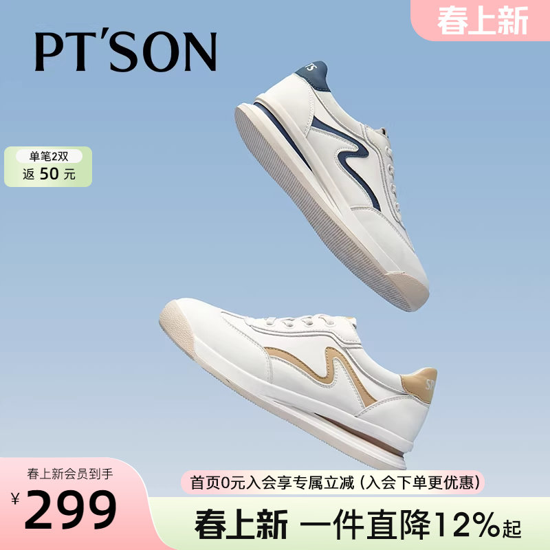 商场同款百田森免系带阿甘鞋女款小白鞋女士休闲运动鞋真皮板鞋女