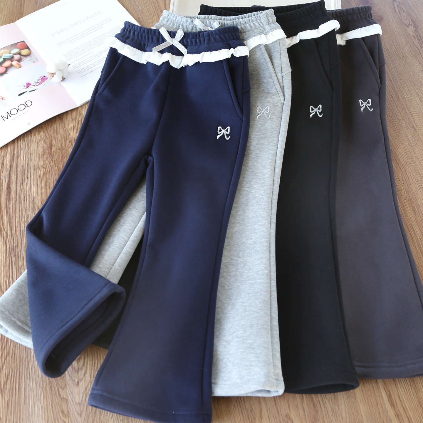 女童加绒打底裤秋冬款加厚微喇叭休闲裤儿童洋气加厚奥粒绒卫裤
