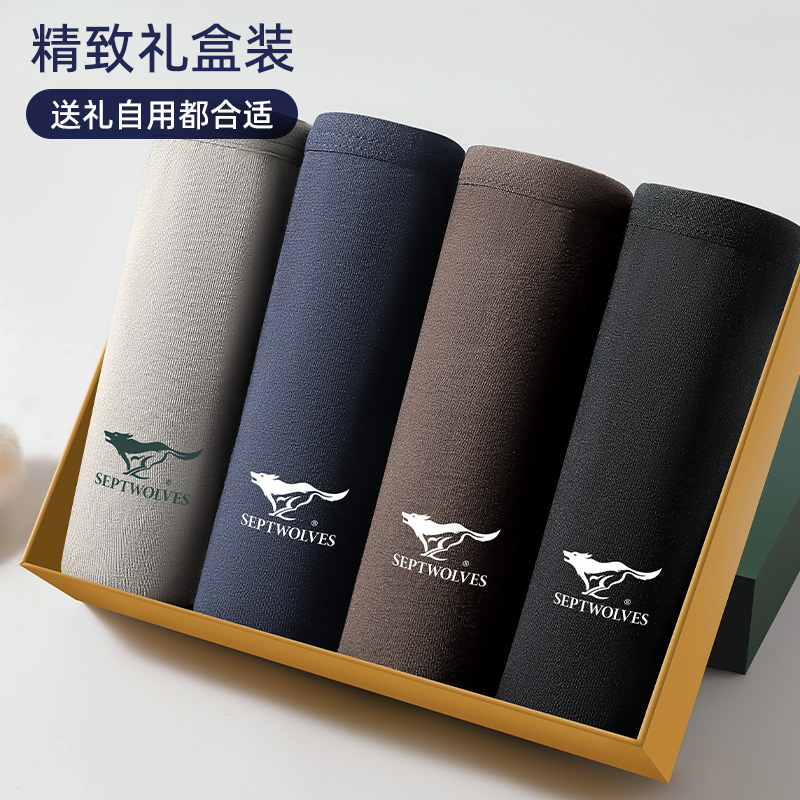 七匹狼男士名牌内裤正品高档纯棉窄腰四角裤小边男款平角短裤细边