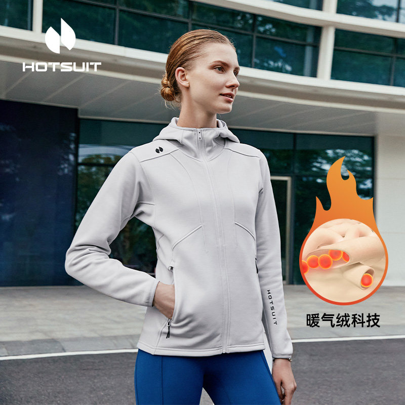 hotsuit后秀加绒外套男女款春季运动衣保暖针织上衣开衫连帽卫衣