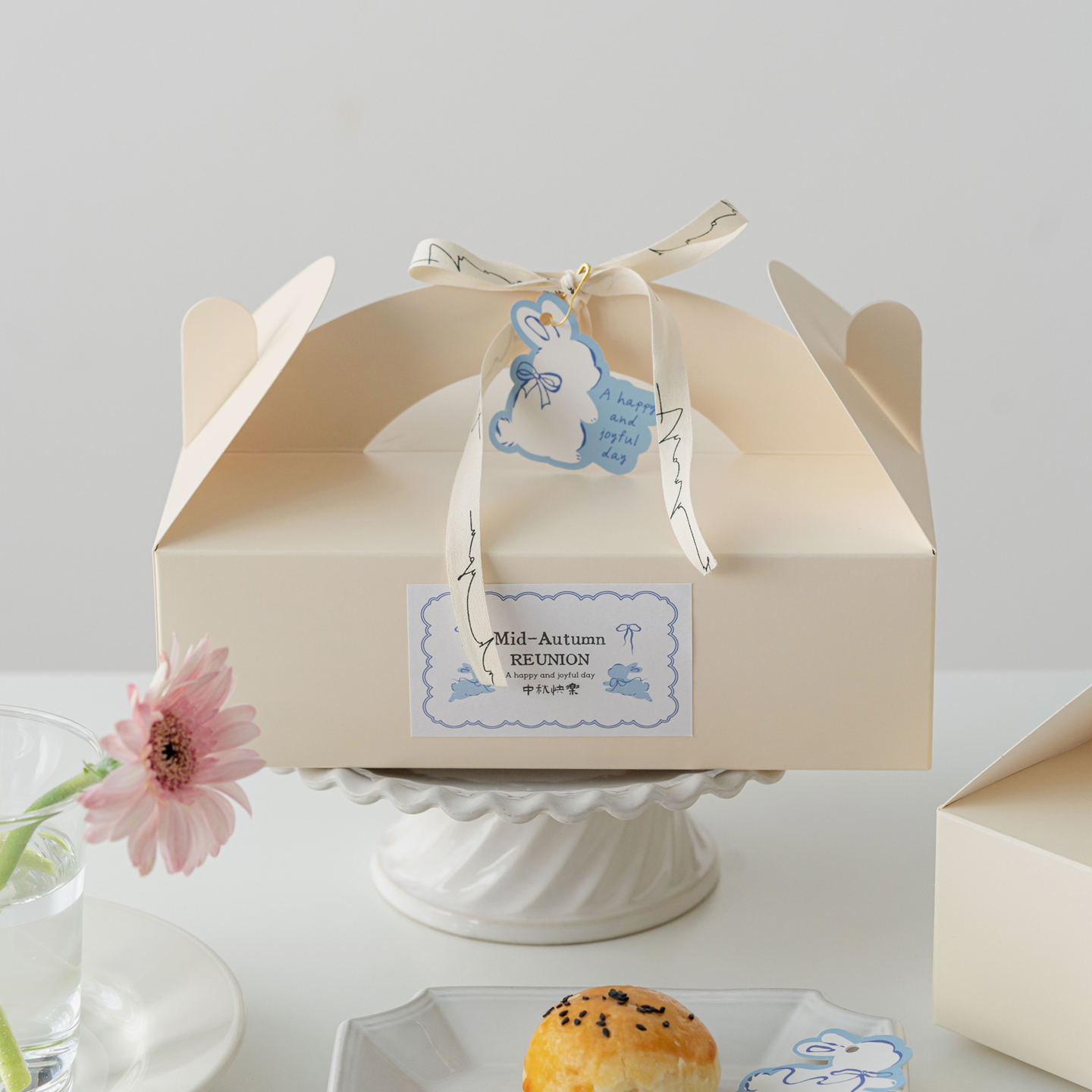 2025新款中秋包装贴纸月饼包装装饰吊牌卡片一次性不干胶定制logo