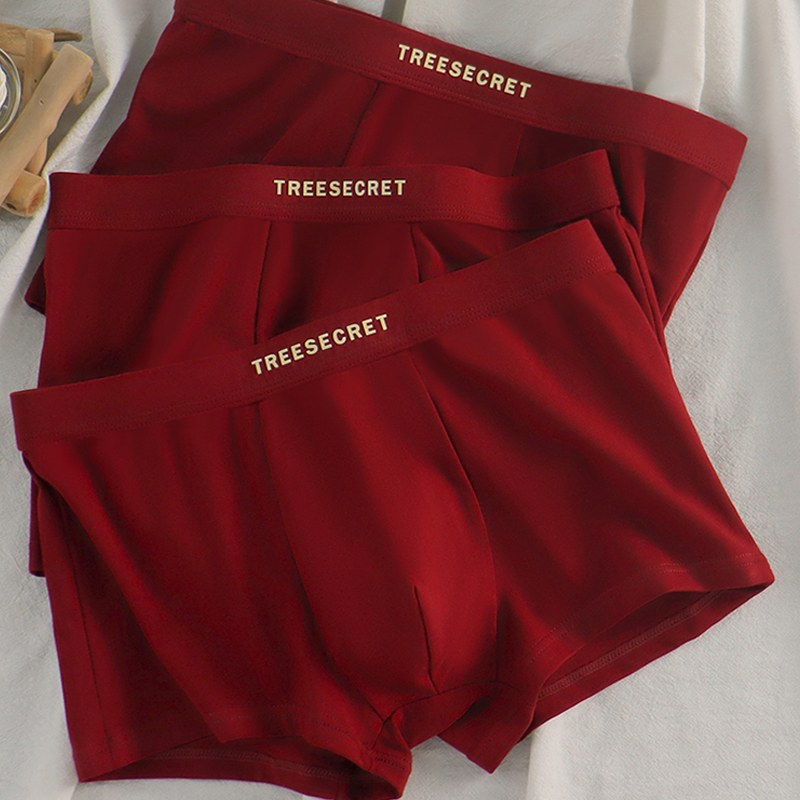 酒红色结婚内裤袜子套装新郎红色本命年中筒船袜男士四角平角短裤