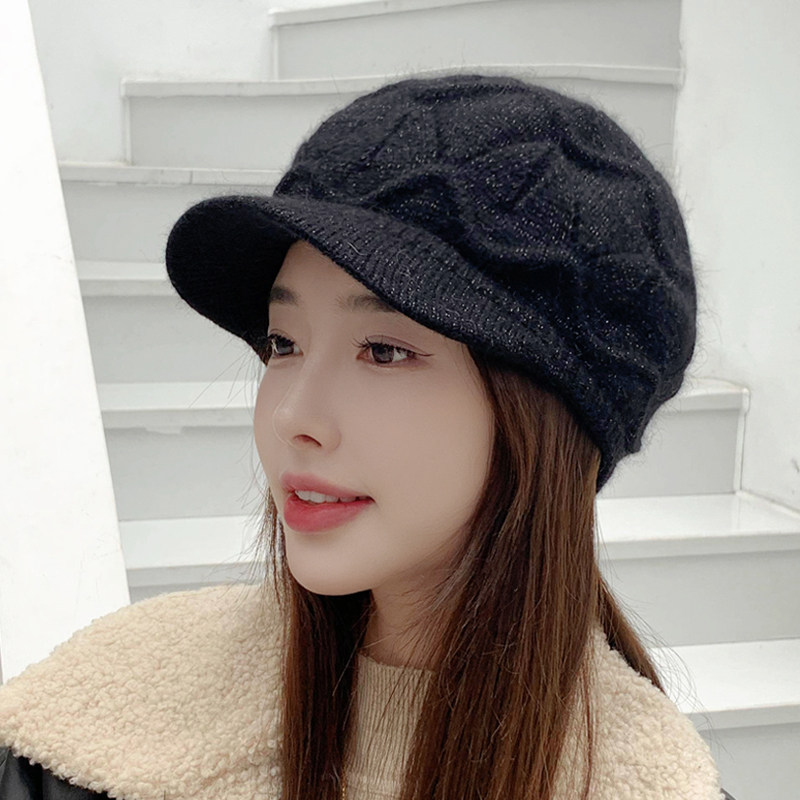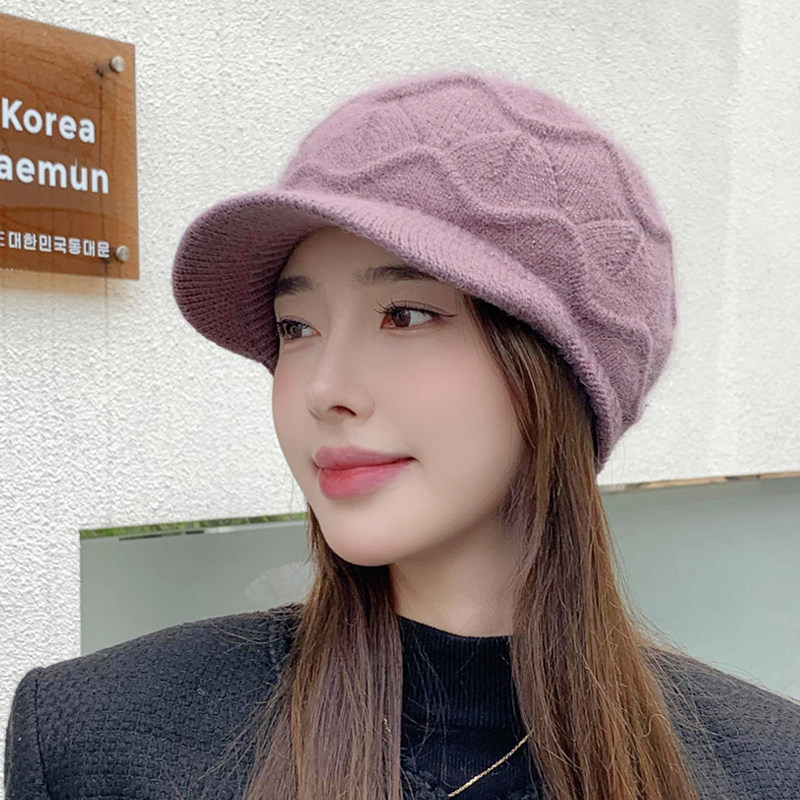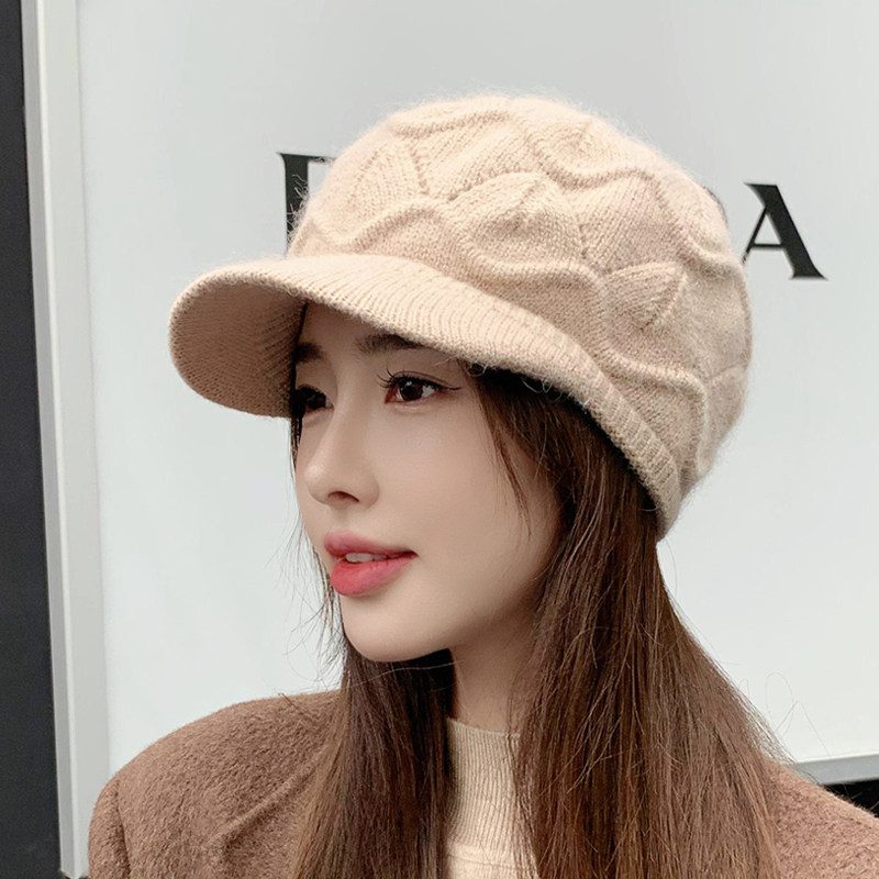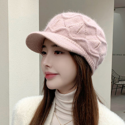 帽子女冬天时尚百搭加绒加厚鸭舌针织帽冬季贝雷帽防寒保暖毛线帽