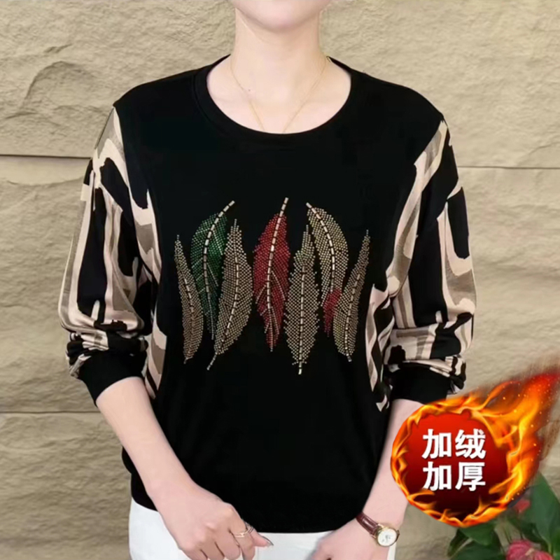 2025春夏新款长袖春秋烫钻中老年女装洋气妈妈宽松棉t恤时尚小衫