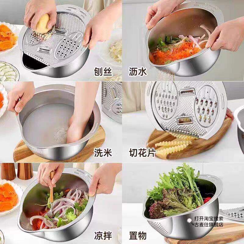 【厨具巨惠】不锈钢沥水篮多功能淘米洗米筛水果盘家用厨房洗