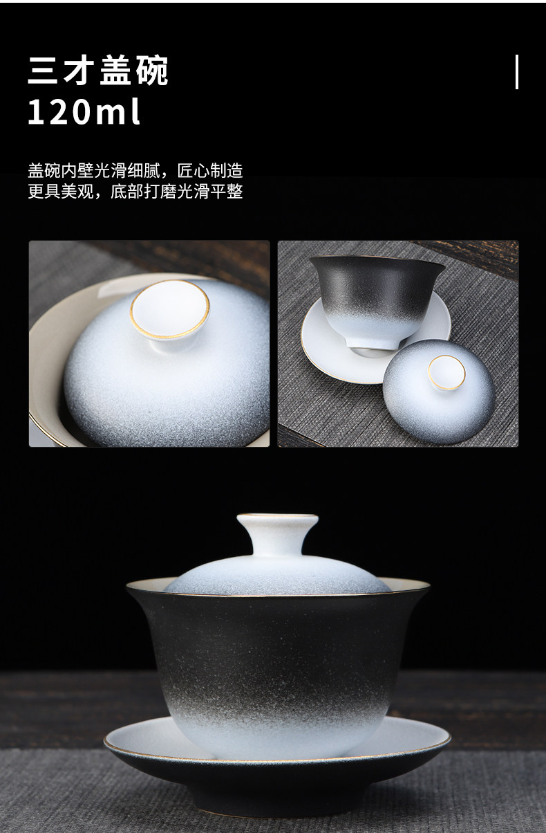 陶明堂点金渐白功夫茶具茶壶三才盖碗公道杯过滤品茗杯六君子茶洗