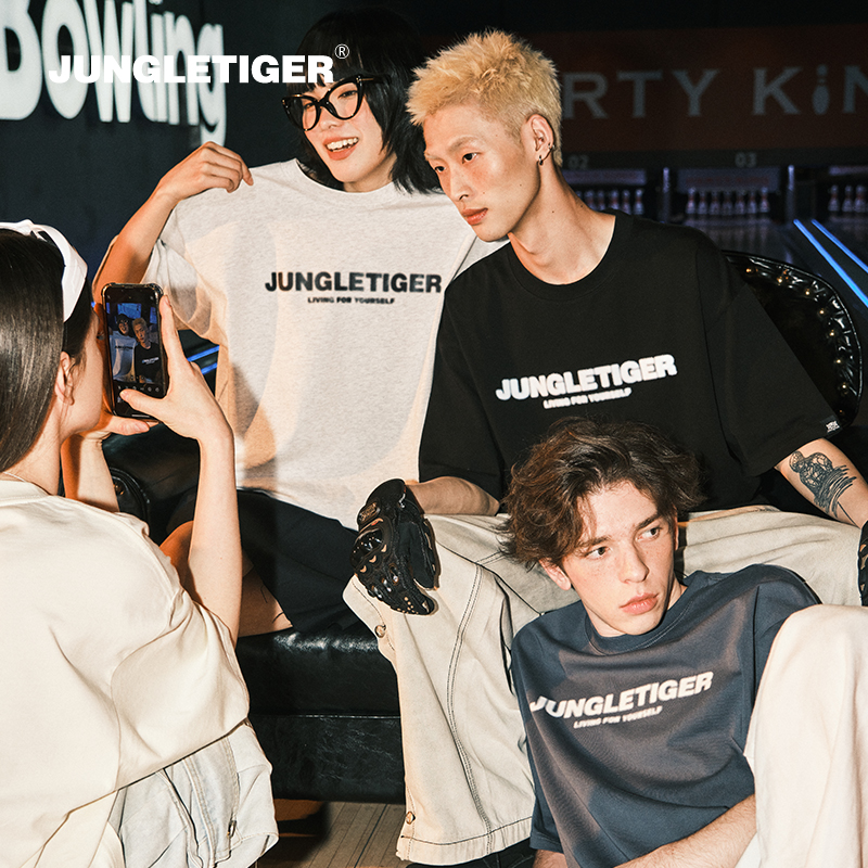 丛林老虎简约字母纯棉潮牌t恤男夏季新款美式休闲宽松黑色短袖女