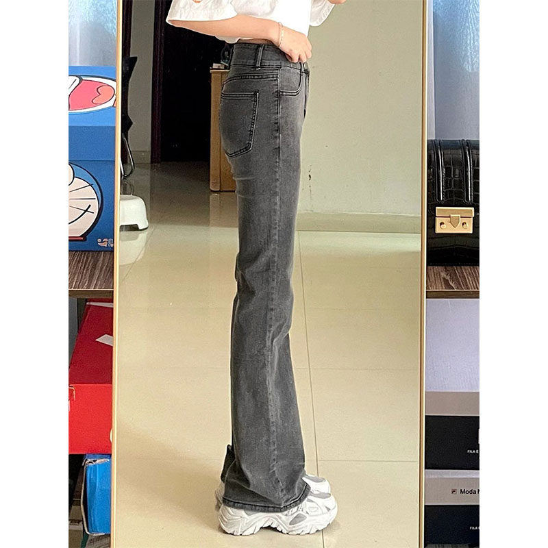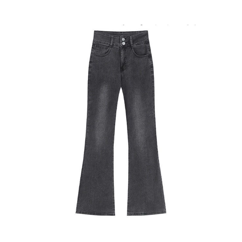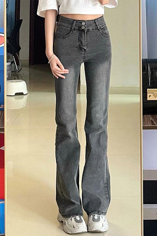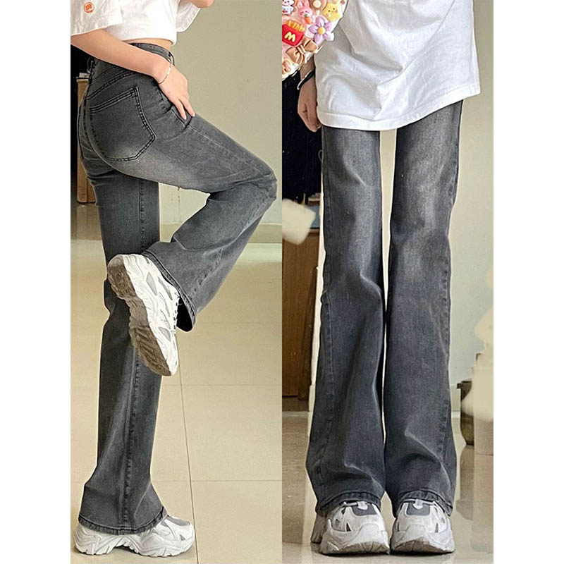 黑灰色弹力微喇牛仔裤女春秋大码胖mm高腰显瘦梨形身材直筒长裤子
