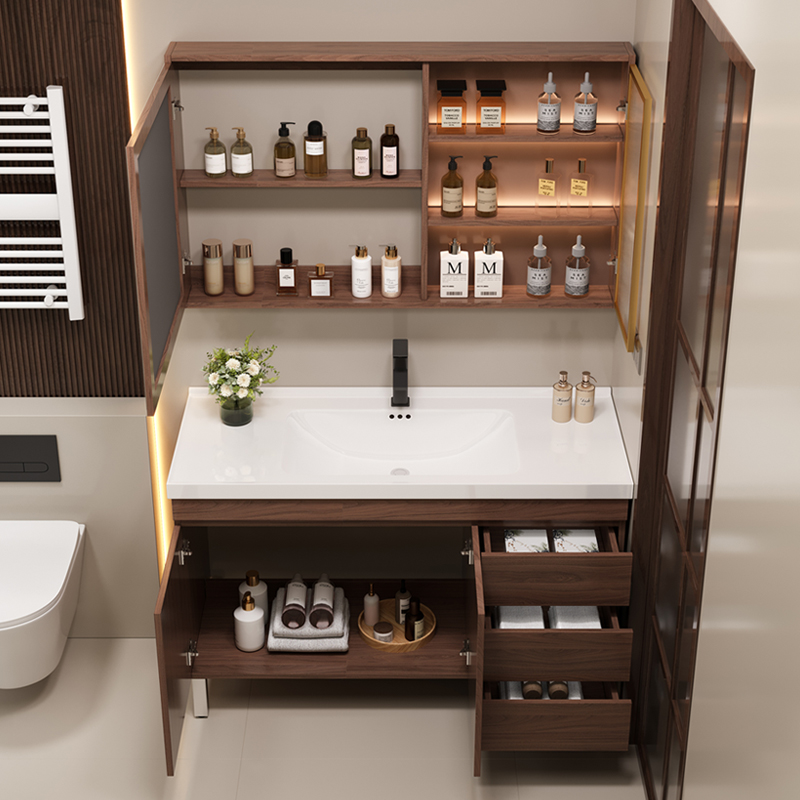 中古风新中式实木浴室柜组合落地柜陶瓷一体洗台盆收纳