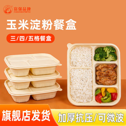 可降解玉米淀粉一次性餐盒外卖打包盒商用快餐盒饭盒三四五格分格