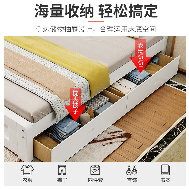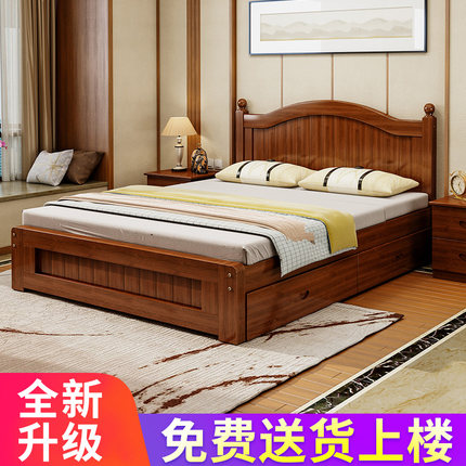 实木床1.5米双人主卧经济型现代简约1.2单人1.8m出租房用北欧式床
