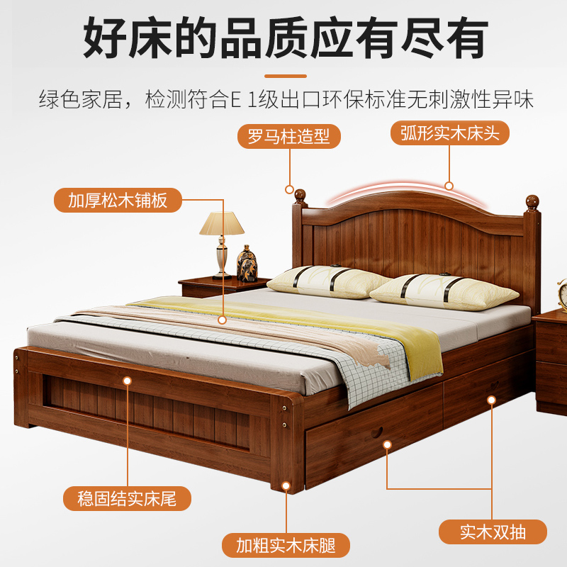 实木床1.5米双人主卧北欧式