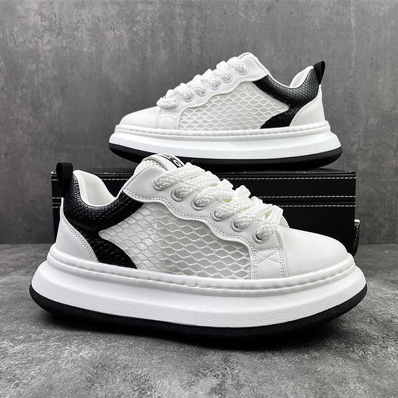 2025夏季新款运动鞋男款网面透气旅游通勤鞋超火厚底休闲小白板鞋