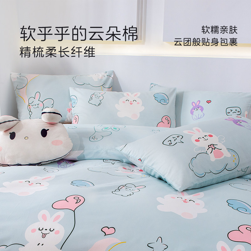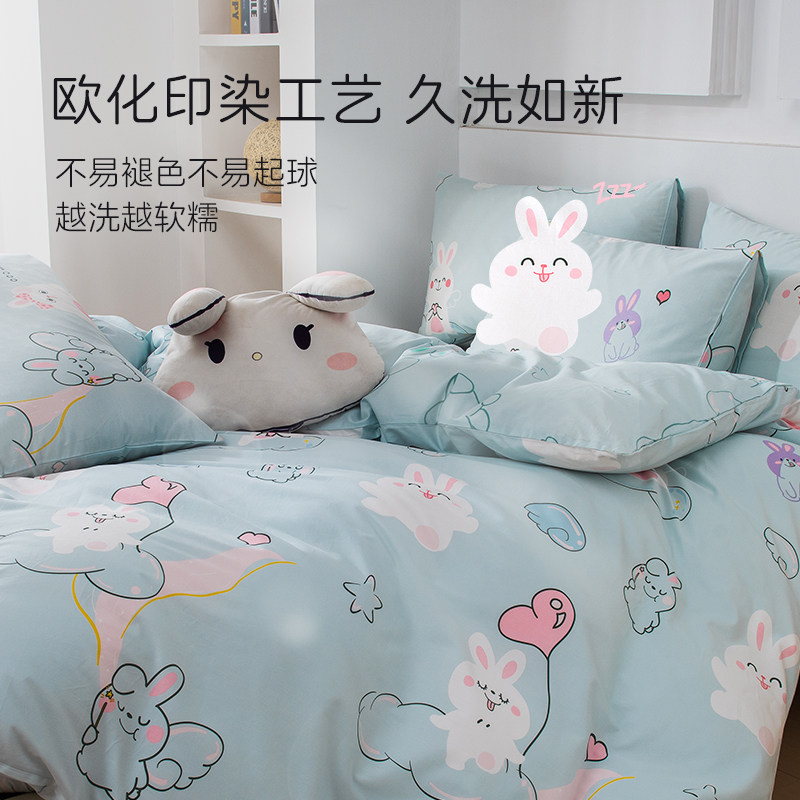 雅芳婷卡通萌兔全棉床上四件套纯棉被套床笠儿童学生宿舍套件床品