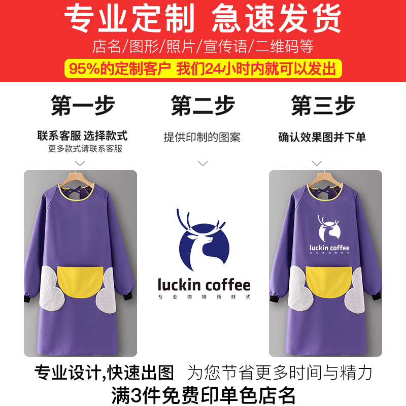 防水防油围裙长袖卡通罩衣女新款秋冬日系定制logo印字工作服专用