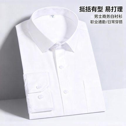 棉透气长袖白衬衫罗蒙专用工装系列商务职业修身挺括白衬衣