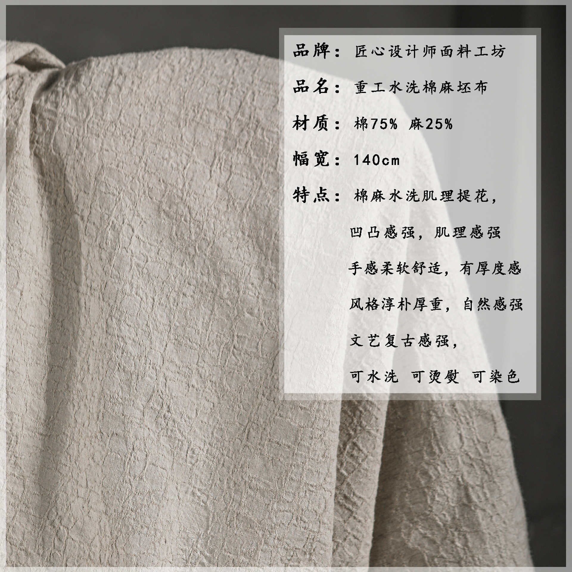 棉麻重工水洗麻坯布 创意素色棉麻diy再造裙子包背景服装设计面料
