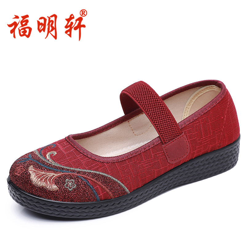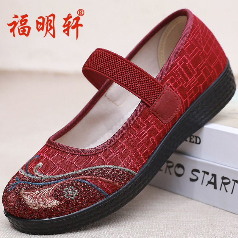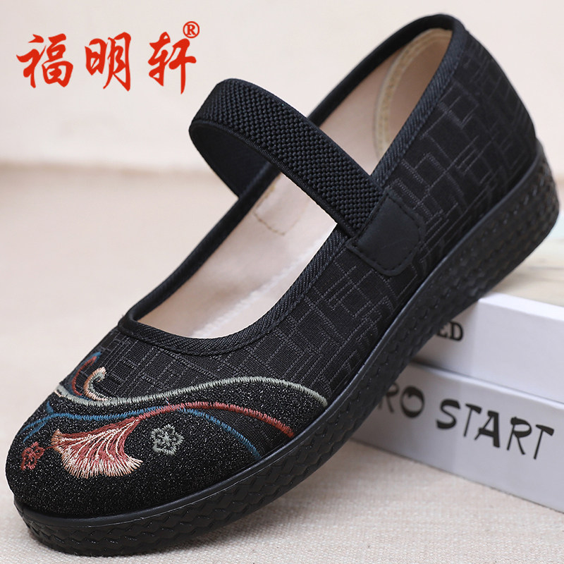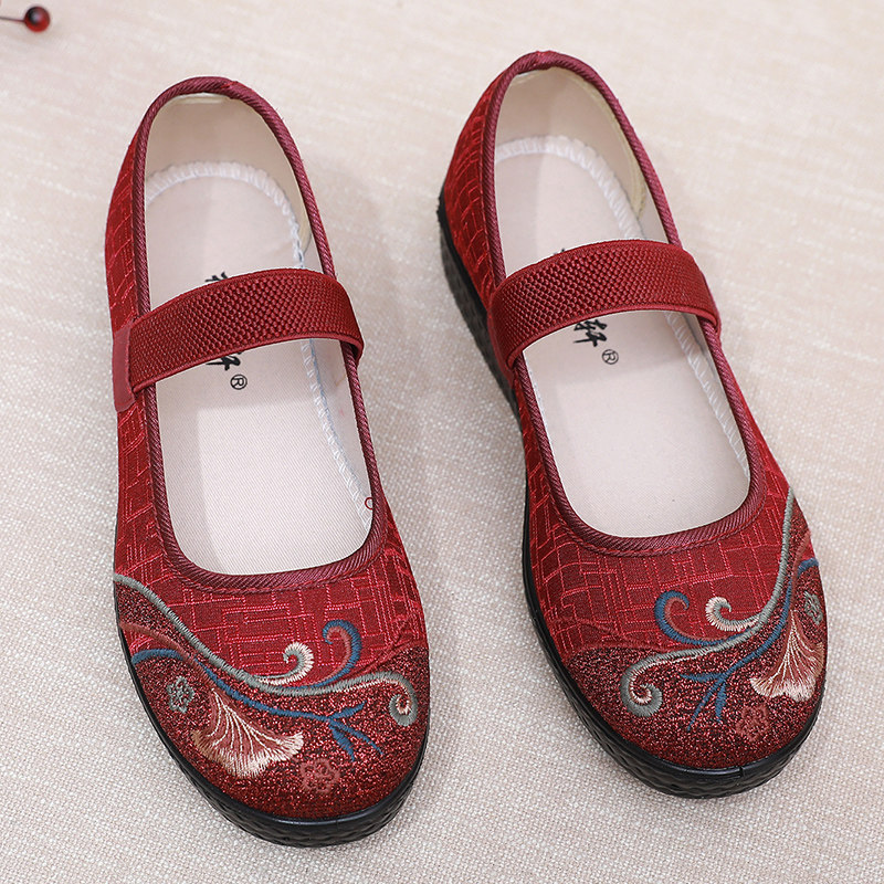 老北京布鞋女宽松老人鞋中老年妈妈鞋平底绣花鞋浅口透气奶奶单鞋