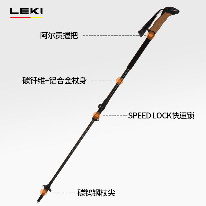 【德国LEKI缺货款】户外可伸缩登山杖碳素超轻外锁至尊混合徒步杖