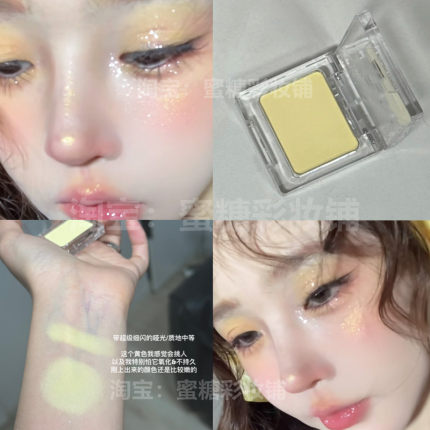 很日杂的小鸡黄 柠檬浅黄色单色眼影细闪珠光夏日彩色薄荷曼波妆