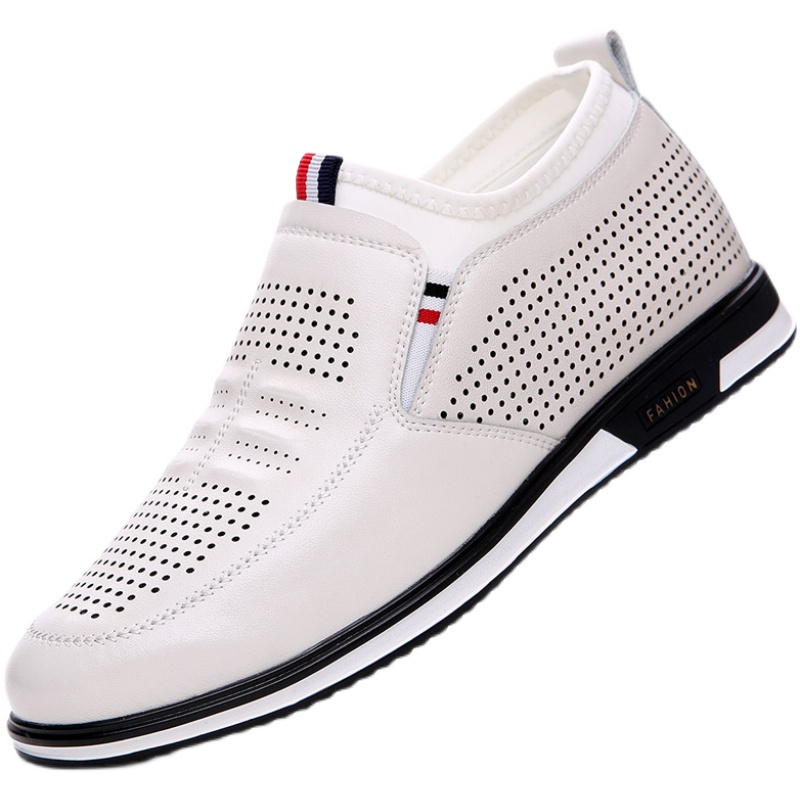 皮鞋男夏季镂空透气真皮商务休闲无鞋带男鞋白色内增高鞋子皮凉鞋