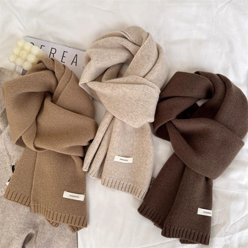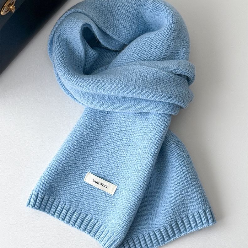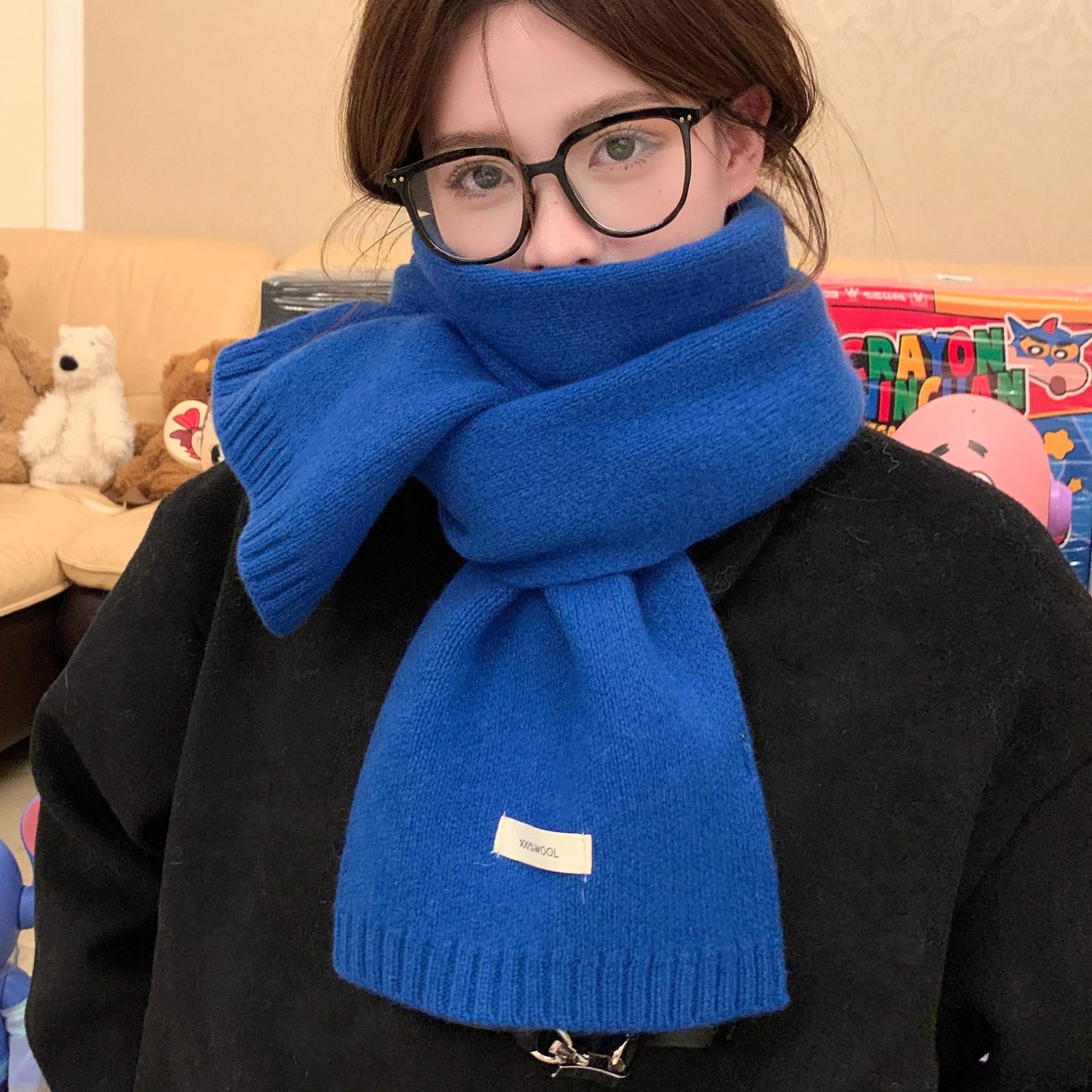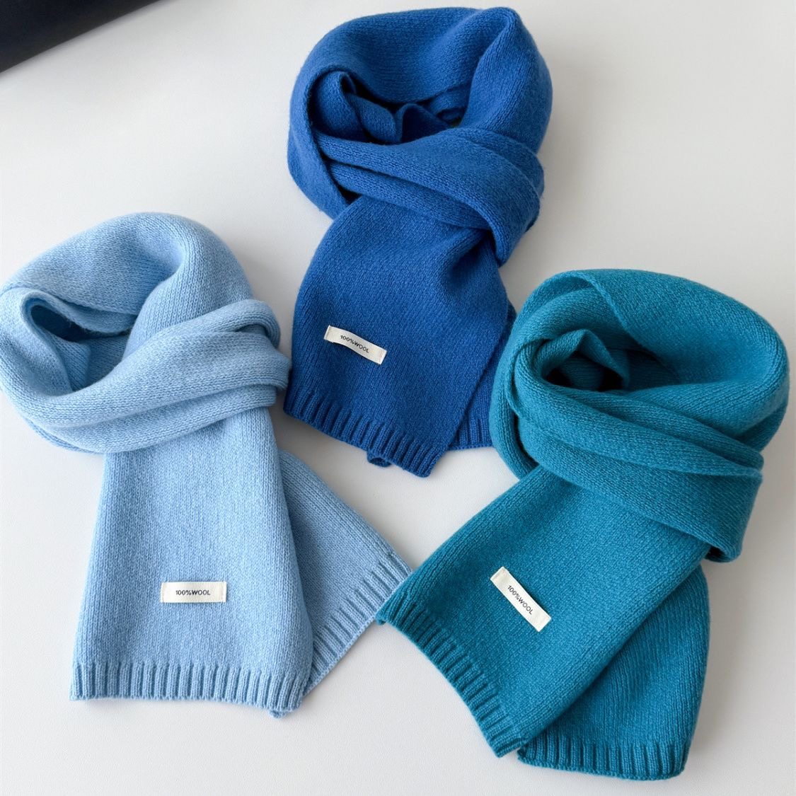 100%羊毛蓝色高级感围巾女冬季韩系氛围感保暖针织百搭毛线围脖男