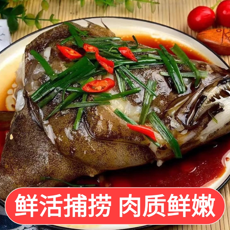 鸦片鱼碟鱼头新鲜超大冷冻超大雅片鱼头整条鲜切深海鱼比目鱼头