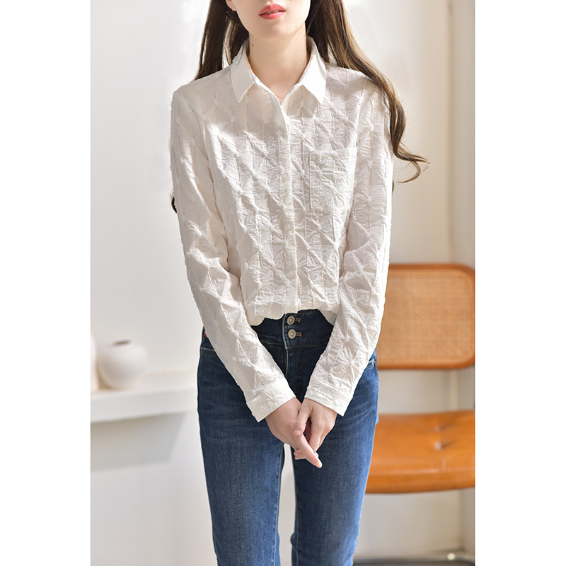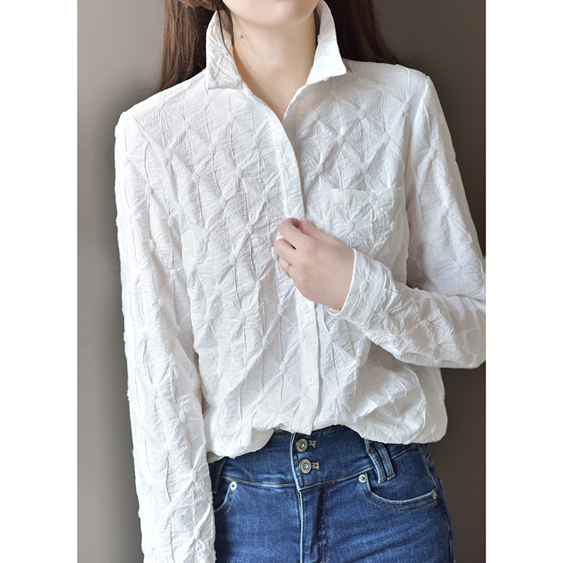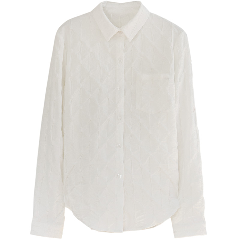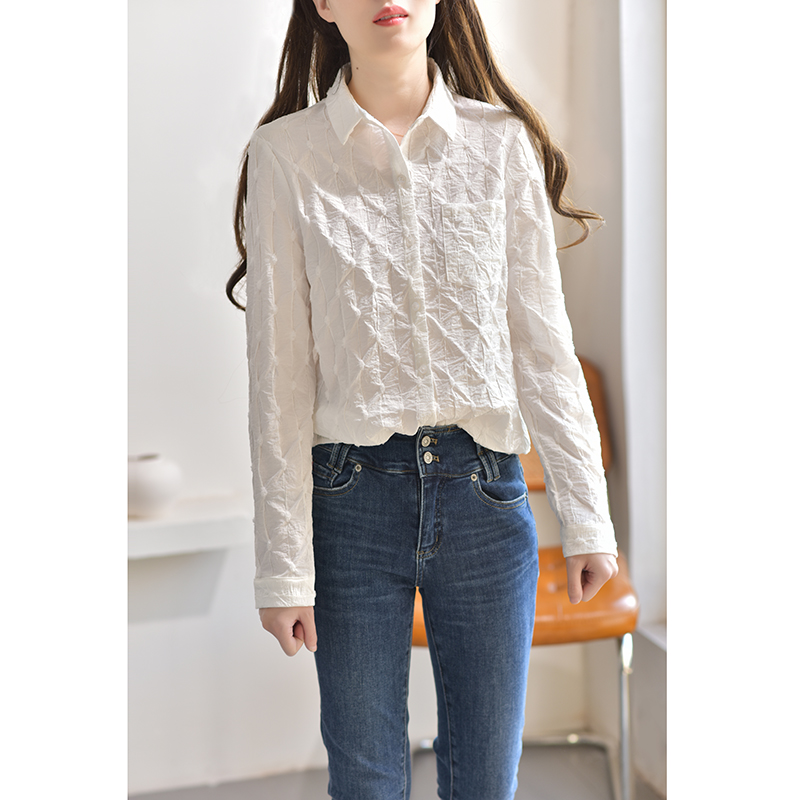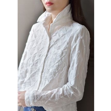 白色衬衫女秋2024新款原创设计感小众提花植绒长袖叠穿内搭上衣