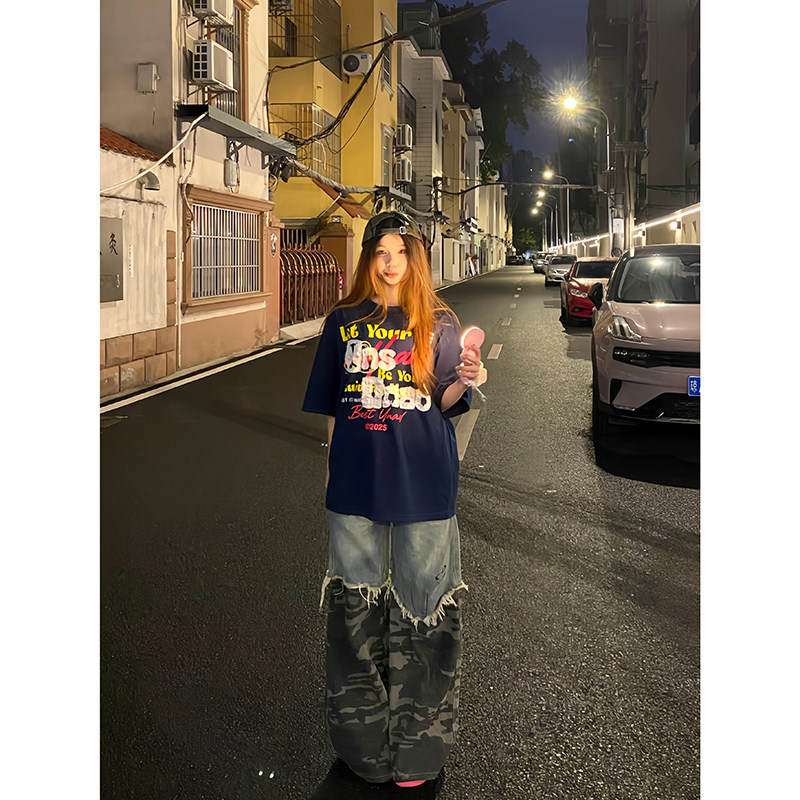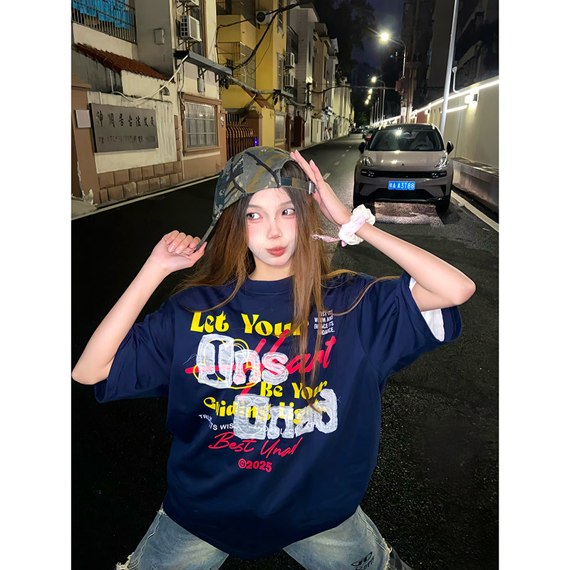圆领纯棉T恤oversiz趣味印花短袖