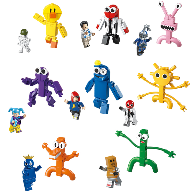 新品彩虹朋友积木怪物绿色公仔全套小人仔男孩子益智拼装玩具拼图