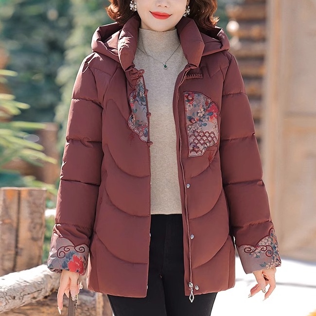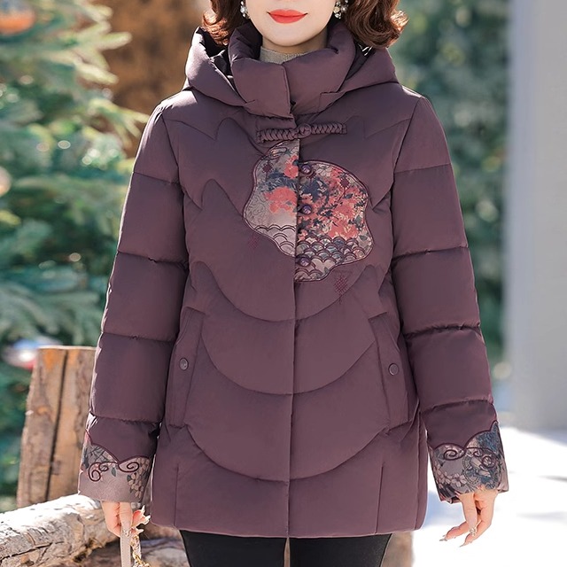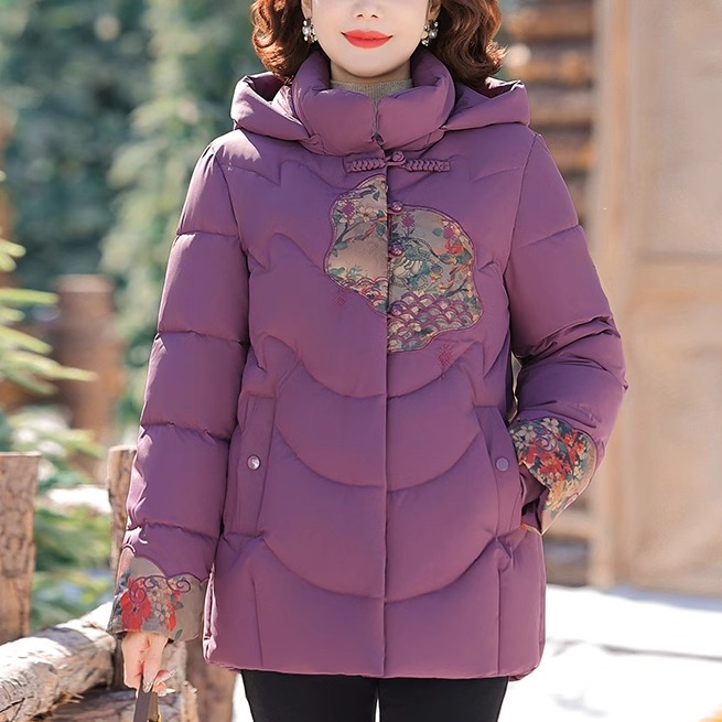 妈妈冬装国风棉衣加绒加厚洋气连帽中老年女羽绒棉服大码保暖外套