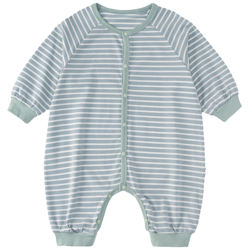 婴儿连体衣居家服纯棉开衫宽松春秋夏季空调睡衣宝宝衣服条纹哈衣