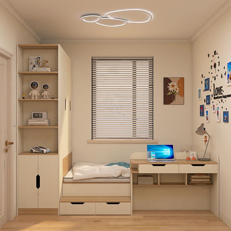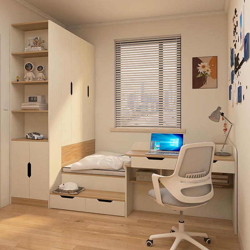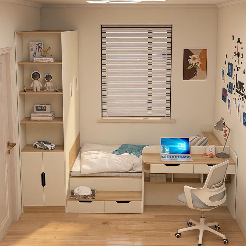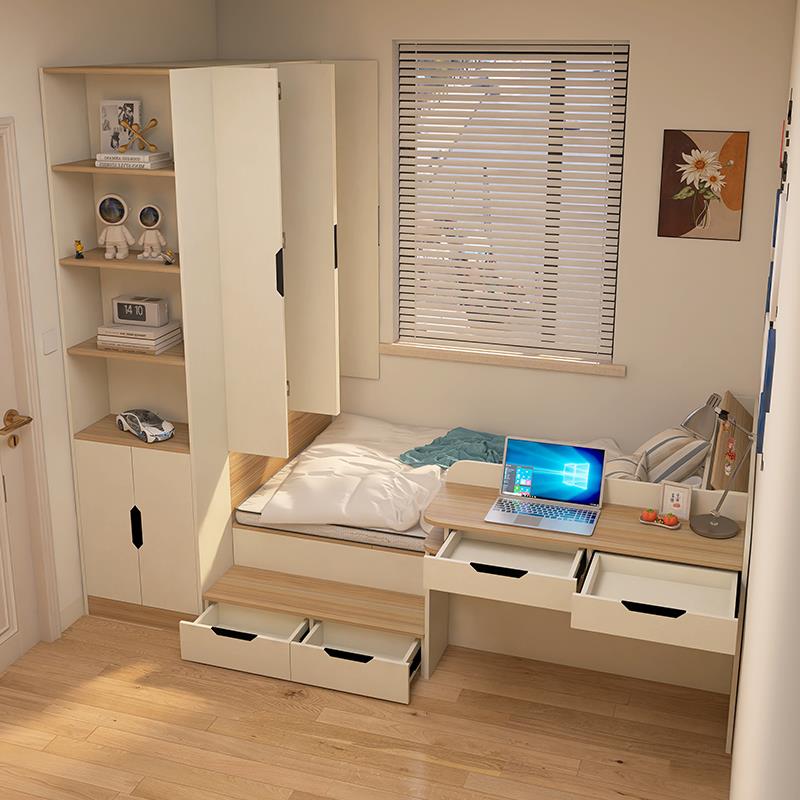 榻榻米床衣柜一体小户型儿童房1米2床定制实木边柜地台书桌一体床