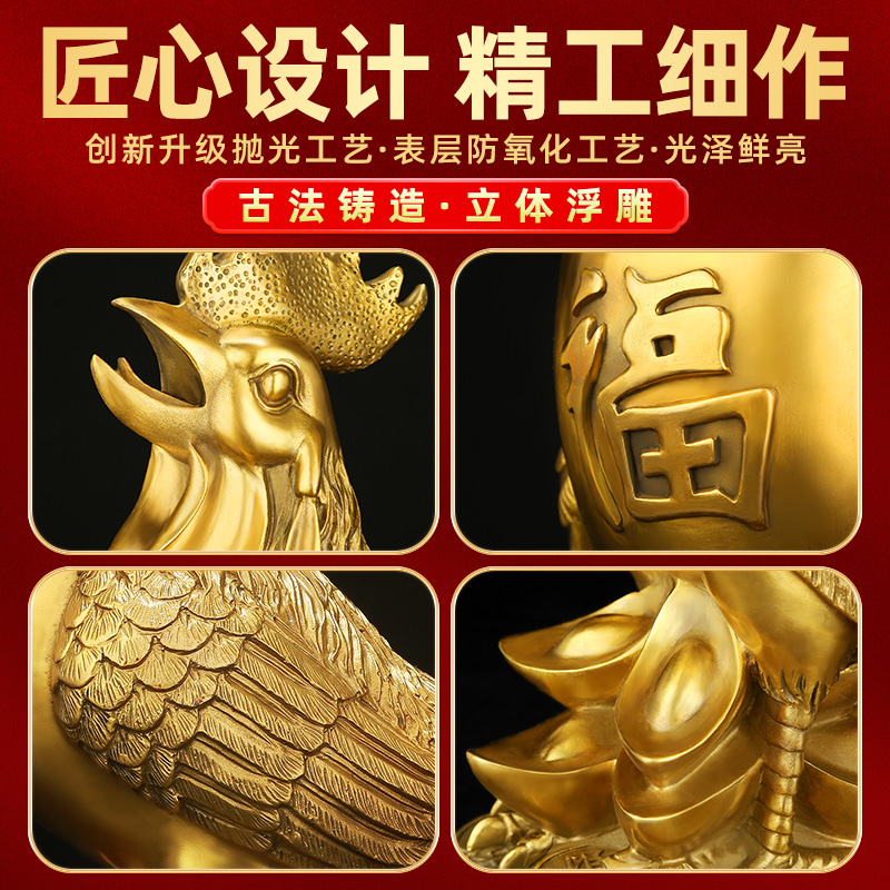 铜鸡摆件铜公鸡大公鸡十二生肖招财金鸡吉祥物家居客厅工艺装饰品